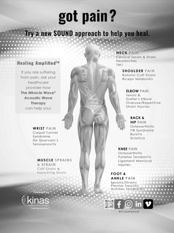 MiracleWAVE is a treatment that uses acoustic pressure wavetherapy (AWT). This is an effective and non-invasive approach to restoring painless mobility in patients with chronic and acute musculoskeletal conditions. Similar to the technology of Extracorporeal Shock Wave Therapy (ESWT), our innovative equipment utilizes the science of sound wave to help repair, restore and rejuvenate muscle tissue, especially where conventional treatments were unsuccessful.